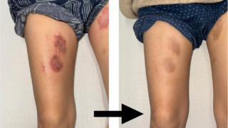 「いままでは夜はずっと一時間おきに起きていたんですけど、顔がきれいになってきてから2回くらいしか起きなくなりました。昼もよく寝るんです。」