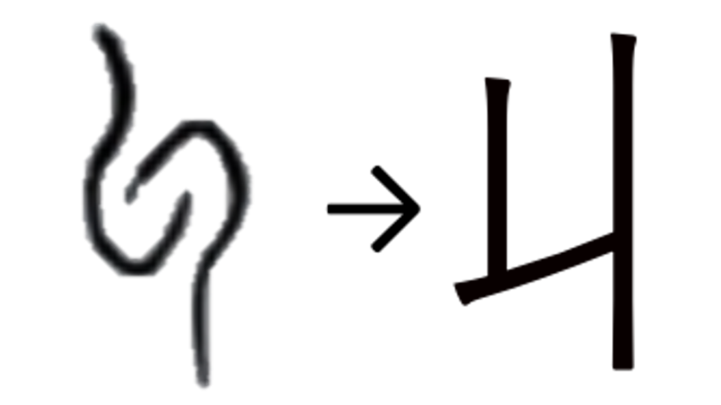「丩」は枝に蔓 (つる) が巻き付く様子を示す象形文字である。「又」は「攴」のことで、手による動作を示す。よって罪人に縄を巻き付けることである。棒に紐を巻き付けるイメージから、中心に引き締める意味を持つ。転じて集める・集金する。