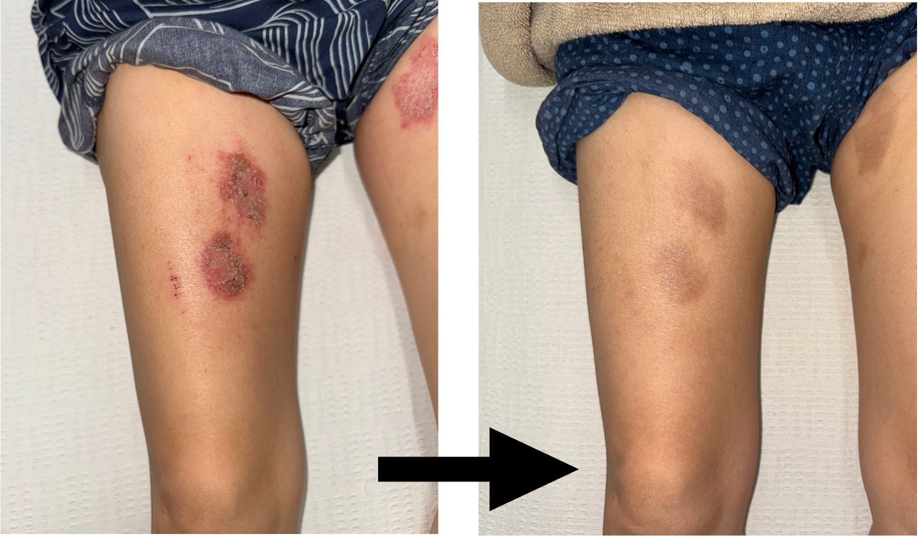 2025年の猛暑も過ぎ去ったある日、電話があった。9/22の1日で計4回の治療をしてほしいとのこと。訴えは大腿部のタダレと痒さ。